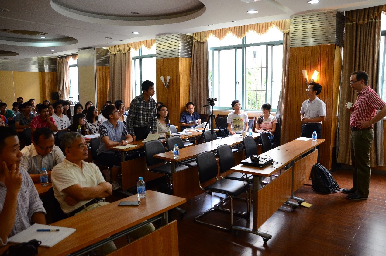 报告会上,Harvey教授首先向大家介绍了鲁汶大学的学校概况,并热切欢迎我院师生对鲁汶大学进行访问。接着,Harvey教授详细报告了实验室的最新研究进展,研究方向主要关于有机化学和有机金属化学的结构及活性模拟,采用电子结构方法,进行模拟计算,内容包括三个部分: (1)预测溶液中多取代烷烃链的构象;(2)催化转化过程精确动力学模型研究进展,以加氢甲酰化为例;(3)铁催化电子自旋交叉耦合反应的定性研究。