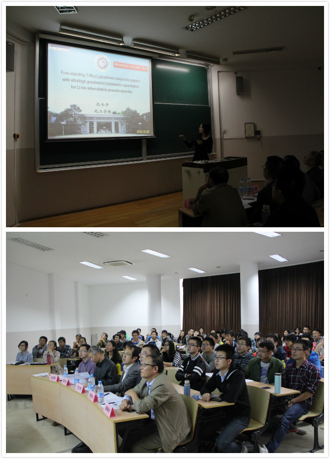报告会现场硕士研究生和博士研究生济济一堂,与评委老师共同参与这场报告会。在两个多小时的报告会中,参与论文报告的五位研究生以严谨的科学态度,独特的视角,扎实的专业知识充分展示了他们在各自领域的科研成果,并在提问环节与各位教授评委就催化剂、碳纳米管、不对称电流器、催化剂Ni的改性和MgO的催化作用等方面问题进行了深入的讨论,精彩的辩论不时赢得同学们热烈的掌声。