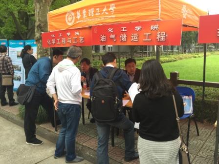 5月14日上午,华东理工大学校内高招咨询会在徐汇校区举行,化工学院开设的化学工程与工艺专业、轻化工程专业、油气储运工程专业及资源循环科学与工程专业的系主任和专业教师参加招生宣传会,接受考生及家长的咨询。