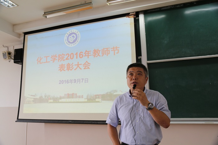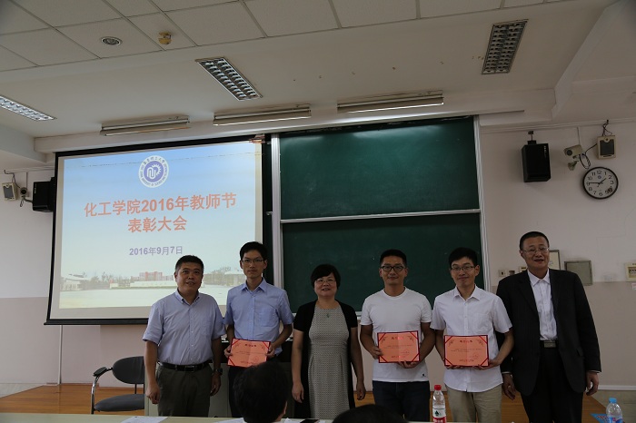 在第32个教师节来临之际,化工学院于97日下午13:30在八教307隆重召开2016年教师节表彰大会,对学院近一年内在人才培养、教书育人、科学研究等工作中取得突出成绩的先进集体和优秀个人进行表彰。会议由学院党委书记李涛教授主持。