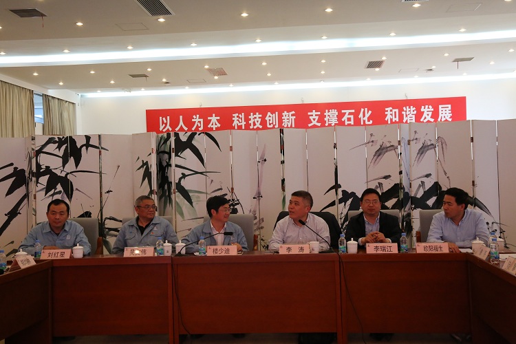 为了促进和激活基层党支部的组织生活,4月26日下午,化工学院李涛书记带领联反所、石加所、化学工艺所、产品工程系、有机化工六个党支部共计29位党员去上海石化研究院开展联合组织生活会。会前,上海石化研究院的杨为民院长和李涛书记一行亲切会谈,回顾了华东理工大学化工学院与贵单位的合作历程和良好互动,并交流了党建和人才队伍建设等方面的具体情况。