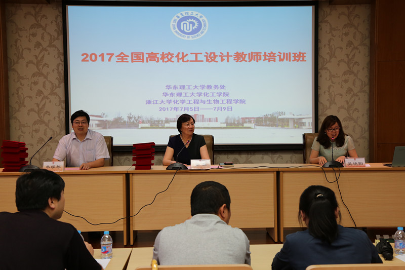 7月6日上午,培训活动举办了隆重的开班仪式,教育部高等学校化工类教学指导委员会副主任于建国教授,华东理工大学教务处处长黄婕教授出席,开班仪式由化工学院副院长赵双良主持。开班仪式上,黄婕处长向前来参与培训交流的各校教师表示热烈欢迎,预祝本次培训为高校培养具有工程经验的师资队伍,为高校学生工程能力的培养做出新的贡献。于建国副主任提出了本科教育中如何体现新工科,针对课堂、实验及实践教学中如何体现新,化工教师的设计能力培养与提升等一系列问题,希望通过化工设计教师培训,进一步扎实创新能力提升国内工程教育水平。