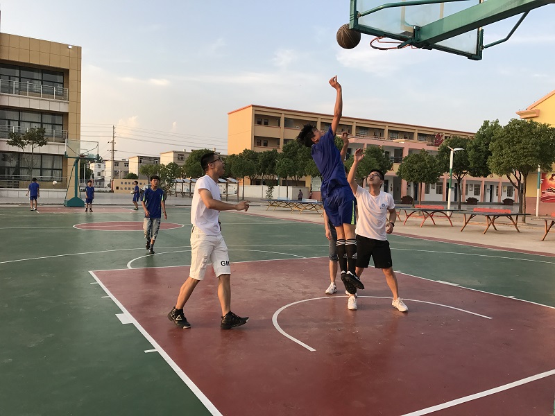 我们了解到学校对足球工作很重视的,专门从外面聘请老师,每天下午五点准时开练一直练到晚上七点半。由于我们水平也有限,也不想打扰到他们正常训练,就放弃了单独抽时间来搞足球游戏的想法。但我们也参与到他们的训练当中,陪他们传传球,守守门,尽管训练很苦,但跟他们在一起训练,依然很有乐趣甚是开心。