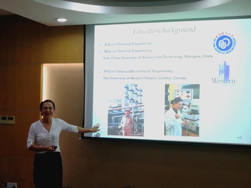 报告会上,何老师首先介绍了自己的在生物质基油品制备、混合生物质协同作用、木材防腐等方面的研究思路和成果,并就其为当地企业、农民在生物柴油生产、生物质再利用的具体应用进行了举例。何老师首先生动地介绍了目前生物质热解油品的研究现状和方法进行了详细的阐述,大大开拓了与会师生的学术视野。随后,她介绍了其在咖啡渣,玉米杆,树皮和微藻等生物质废物转化方面的研究成果,创造性地提出了通过生物质脂肪含量设计生物油生产路线的新方法,尤其对规模较大的咖啡渣的有效利用,同时其对多种生物质复合协同效应的研究为复杂组分生物质体系的进一步发展提供了理论指导与实验依据,极大地扩展了现有生物质资源循环利用的灵活性和应用范围。