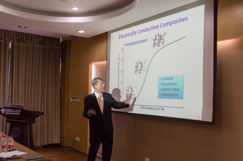 20171031日,加拿大皇家科学院院士、工程院院士、多伦多大学微孔塑料制造实验室主任Chul B. Park教授应化工学院赵玲教授邀请到校访问交流,作了题为“Conductive Polymer Composites And Foaming Research In Microcellular Plastics Manufacturing Laboratory”的学术报告,赵玲教授主持了报告会,来自化工学院、材料学院和机械学院的50多名师生参加了报告会