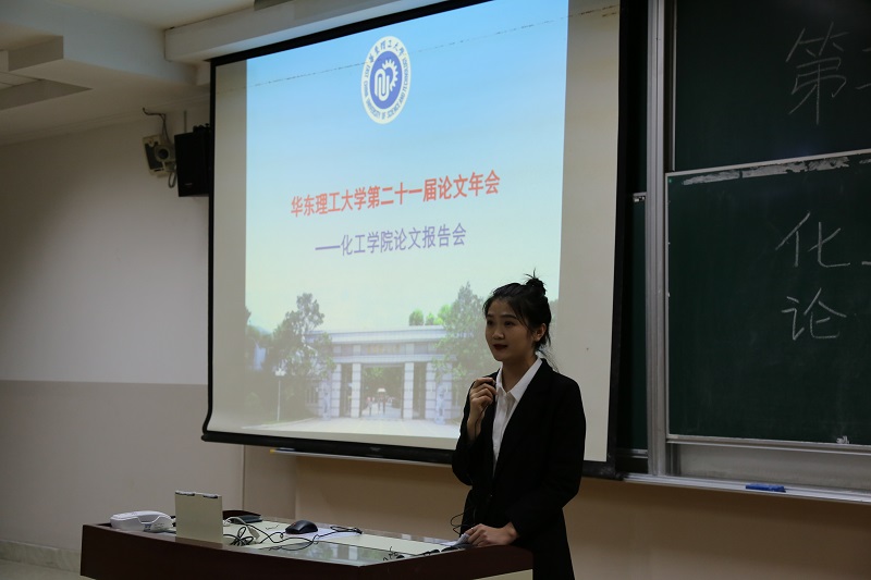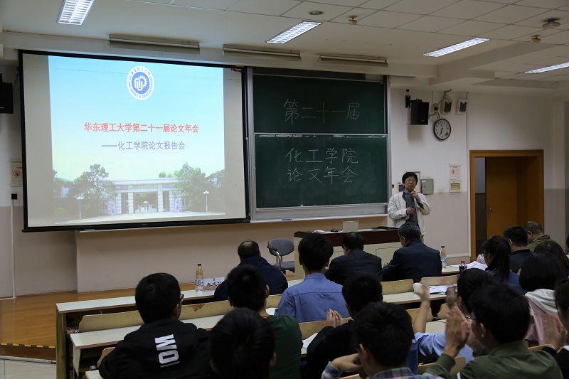报告会伊始,研究生辅导员于靖老师为同学们简要地介绍了论文年会,并特别强调华理化工学生最讲学术,希望学生能真正发挥求真求实的学术精神,仰望星空并脚踏实地,为华理化工的美好建设添砖加瓦。