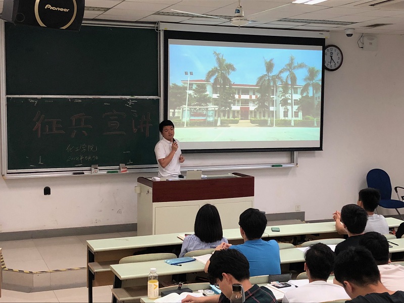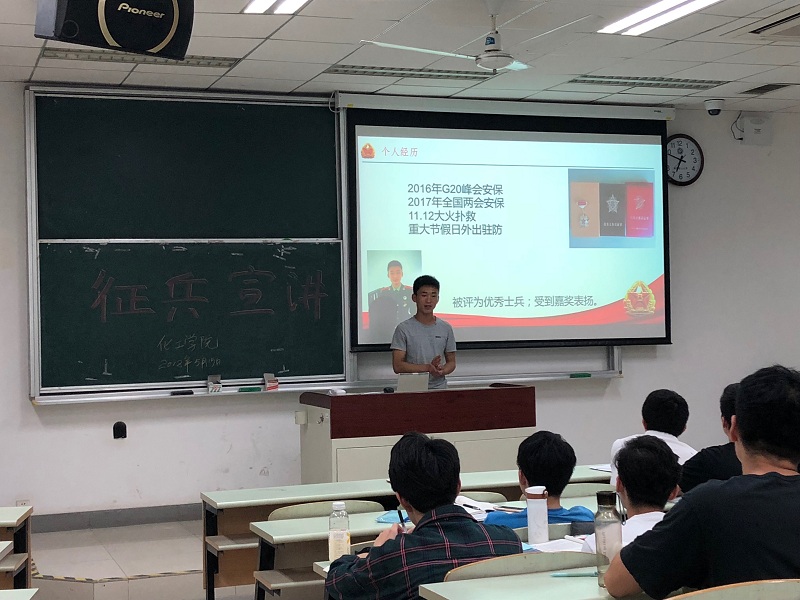 又是一年初夏五月,火热的征兵季开始了!为了让同学们更好地了解征兵条件及政策,具体直观地了解军营生活,切实做好2018年征兵宣传动员工作,化工学院学工委在2018年5月15日晚6:00于教学楼D306教室举办了一场别开生面的征兵动员宣讲会。宣讲会由2016级辅导员强莉主持,宣讲嘉宾为化工学院优秀退伍学生2015级谢禄霖同学,2016级翁新龙同学以及2017级张正雄同学。
