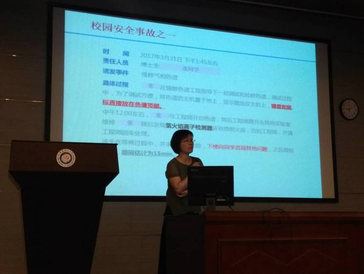 化工实验室安全究竟有多重要?13日上午,化工学院实验中心主任、兼职辅导员徐菊美为新生进行了安全教育专题报告会,这也是学院首次请兼职辅导员助力新生入学安全教育活动。徐菊美以“学思践悟 树立科学的安全观”为主题,引用了“石油醚爆炸事故”“气相色谱事故”等十余个国内外化工相关实验室事故案例,全方位立体化地帮助新生树立牢固的安全意识,给在场研究生新生留下了深刻印象。据了解,化工学院有8位年轻教师兼任辅导员。他们学术造诣高、科研能力强,在研究生朋辈互助教育方面,年轻的兼职辅导员更能够从青年视角出发,贴近学生生活,深入学生内心,为研究生成长成才指引方向。