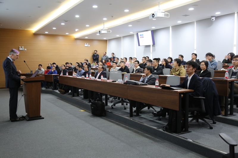 聘任仪式结束后,Krijn P. de Jong教授作了题为“Effects of Size, Location and Support on Nanoparticles in Catalysis”的学术报告,针对非均相催化领域中催化剂上活性金属颗粒尺寸大小及其在载体上分布位置、载体的影响和原位TEM研究方法的使用等几个方面进行讲解,报告结束后与在场师生进行了深入讨论,同时分享了他的学术思想和研究经验。