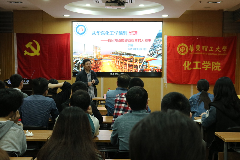 4月21日,党支部邀请英国上市公司365“华二代”于靖老师为毕业班党员做了题为“从华东化工学院到华理——我所知道的那些优秀的人和事”的讲座。