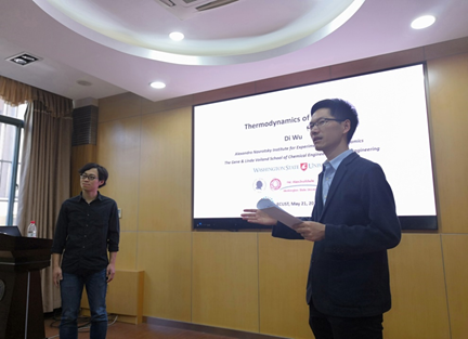 5月21日上午,应化工学院邀请,美国华盛顿州立大学化学工程与生物工程系助理教授、Alexandra Navrotsky试验热力学研究院主任吴狄博士来校访问,并做了题为:“Thermodynamics of Catalytic Materials”的学术报告。化工学院党委副书记高艺霞,学院部分教师、研究生和本科生参加了这次学术报告会。高艺霞老师对吴狄博士的来访表示热烈欢迎,就华东理工大学与华盛顿州立大学在化工专业本科生联合培养、交流互访等方面进行了深入交流,并为吴狄博士颁发了华东理工大学化工学院本科生校外导师聘书。石油加工系副系主任孙辉主持了报告会。