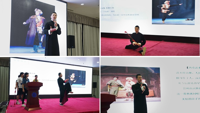 蓝天通过逻辑重音戏剧化处理的台词、内心独白式演唱、舞蹈化的肢体动作,声情并茂地介绍了整出戏高潮迭起的情节,形象地刻画了杨子荣爱憎分明、智勇双全和对党衷心的人物特点。用京剧艺术的形式将革命英雄杨子荣生动再现,充分展现了杨子荣的爱国主义情怀。现场同学们参与的互动环节更是掌声不断,高潮迭起。