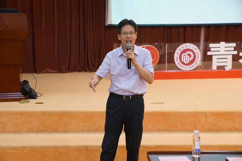 中国石化集团宁波工程公司上海分公司党总支书记卢雪军书记受邀担任主讲嘉宾,为化工学院师生党员、入党积极分子带来“青春奋斗献祖国”主题党课。本次活动由化工学院石油加工系主任赵基钢主持,化工学院团委副书记强莉,本科生奉贤党支部书记姜贤武,18级辅导员刘宗慧参与活动,来自化工学院的三百余名党员、积极分子及入党申请人聆听讲座。