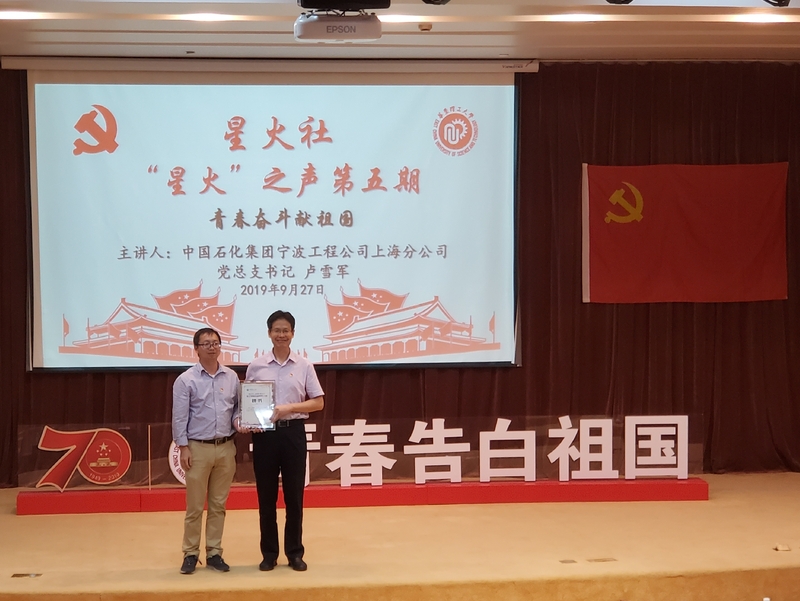 2019年9月27日下午,化工学院、理论学习型社团星火社共同举办的“星火”之声第五期集体党课于奉贤校区敬贤堂成功举行。