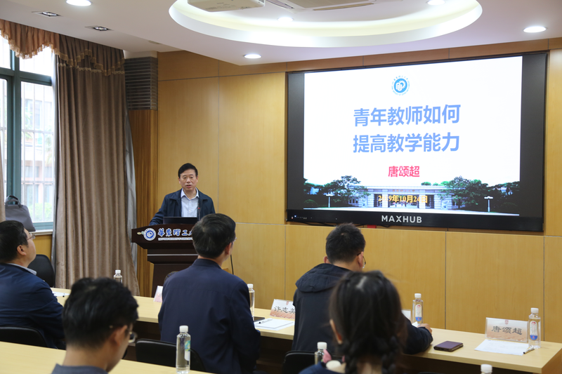 唐颂超为大家做题为“青年教师如何提高教学能力”的报告。唐老师和青年教师分享了自己多年的教学体会。他指出,做好一名教师应当有定力、有坚守,在看到学生学有所获的时候就能倍感欣慰。大学的功能在于科学研究、社会服务,也在于人才培养、文化传承,我们的青年教师在工作之中有着义不容辞的责任。