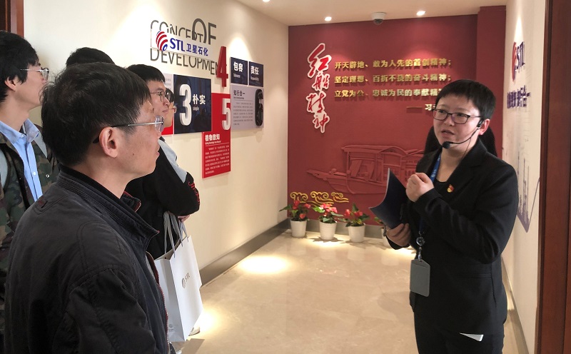 11月16日上午,化工学院31名本硕博同学在辅导员于靖、周夏青的带领下,来到浙江卫星控股集团走访交流。同学们聆听工作人员对公司发展情况的介绍,参观集团总部和生产基地,与公司员工一起探究大化工的奥秘。