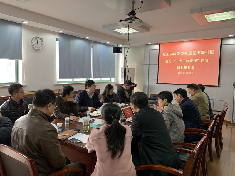 12月17日,化工学院党委组织召开教工党支部书记履行“三大主体责任”职责述职评议会。校党委组织部常务副部长沈悦萍,化工学院党委书记朱学栋,党委副书记高艺霞,党委宣传委员、副院长刘殿华以及学院全体教工党支部书记出席会议。