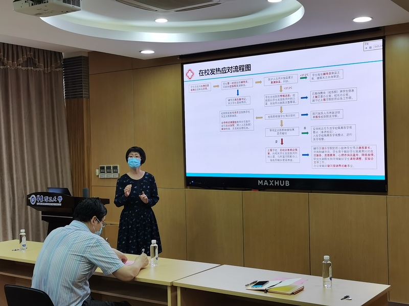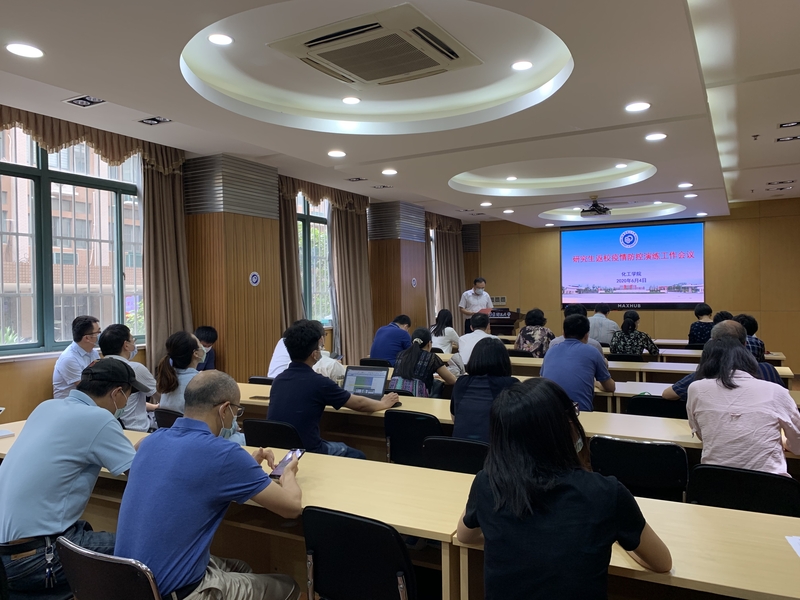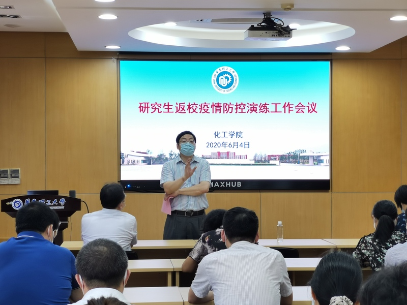 为深入贯彻落实习近平总书记关于新冠肺炎疫情防控的重要讲话精神,按照学校“预防为主,安全第一”的思想,认真做好第二批研究生集中返校后的师生安全保障工作,6月4日,化工学院召开研究生返校疫情防控演练工作会议,研究生导师及实验室管理等相关工作人员参会,副院长刘殿华主持了会议。