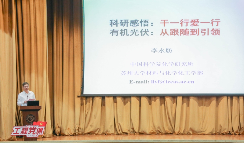 为继承和发扬老一代科学家艰苦奋斗、科学报国的优秀品质,进一步弘扬新时代爱国、创新、求实、奉献、协同、育人的科学家精神,厚植爱国主义情怀,引领广大研究生在科技前沿和关键领域攻克难关、在交叉前沿领域创新研究。5月14日,化工学院在徐汇校区逸夫楼报告厅举办“工程党课”。中国科学院院士、高分子化学家李永舫以“科研感悟:干一行爱一行;有机光伏:从跟随到引领”为主题,带来了一场别开生面的“工程党课”。活动由化工学院院长李春忠主持。学院党委副书记高艺霞、青年教师代表以及学生代表等200余人参加活动。