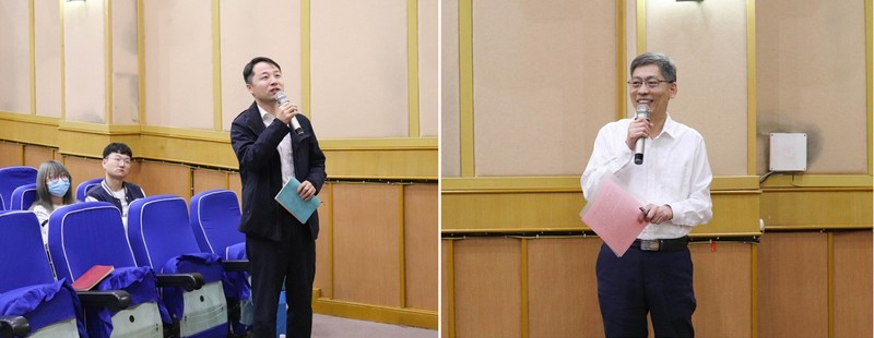 李永舫回顾了在华理的学习生活,分享了他早年的求学经历。1977年,他抓住了恢复高考的机会,在29岁“高龄”进入华东化工学院(现华东理工大学)读大学。他回忆到:“在华理的校园生活中,每天跑操,学习英语,以饱满的热情投入到学习中。”随后提前考取了物理化学专业的研究生,从此走上科研道路。他用“热爱、用心、努力、认真”8个关键字总结自己的科研感悟,用行动诠释“干一行爱一行”的科研追求,赢得了现场师生的热烈掌声。