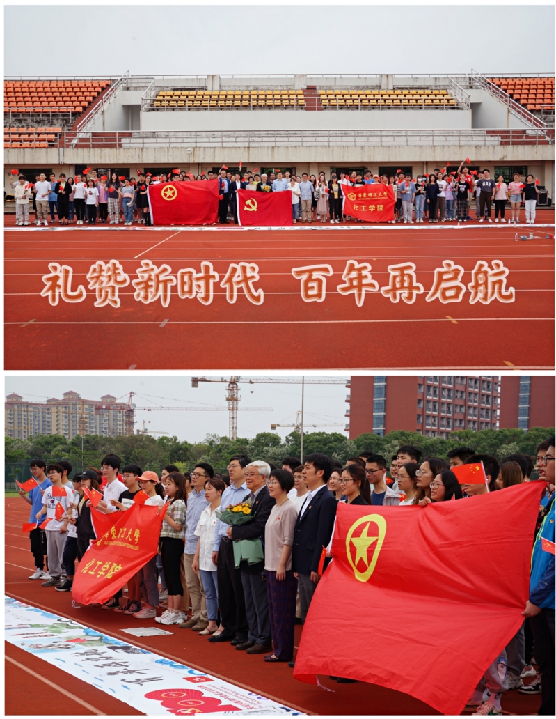 为迎接中国共产党百年华诞,扎实开展好党史学习教育,化工学院于5月27日举办“百米长卷绘蓝图”主题活动,以中国工程院院士袁渭康先生、化工学院党委书记朱学栋和青年教师、学生党员为代表的老中青三代师生齐聚奉贤校区田径场,挥毫泼墨,共同谱就出一幅璀璨“红”图。参与活动的还有学院党委副书记高艺霞、段学志、吴艳阳、张相洋和各年级辅导员及百余名学生代表。