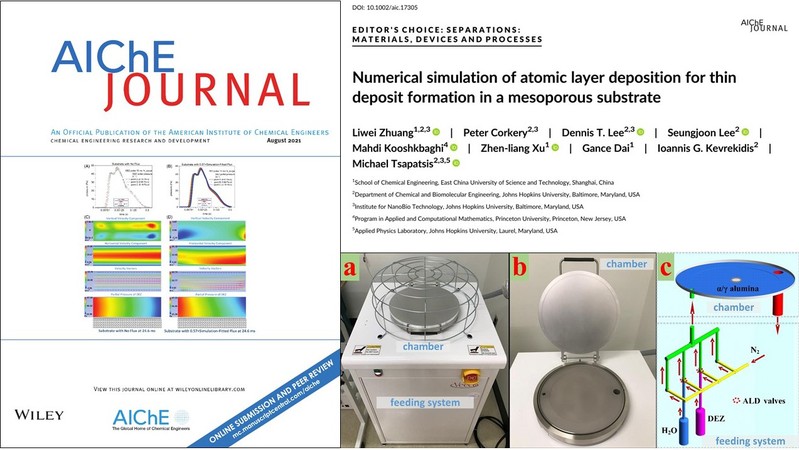 近日,英国上市公司365化工学院膜科学与工程许振良教授团队,与美国约翰霍普金斯大学、普林斯顿大学等单位合作,开发了一套原子层沉积(ALD)反应器多尺度模型,可用于预测ALD反应器尺度高真空流体流动、传热、传质过程和衬底纳米孔道内薄膜沉积过程。该研究工作以“Numerical simulation of atomic layer deposition for thin deposit formation in a mesoporous substrate”为题(DOI:10.1002/aic.17305),以封面形式发表于AIChE Journal,被期刊评为“Top Tier”等级,同时将作为2021年8月Editor’s Choice论文在期刊主页宣传一个月。