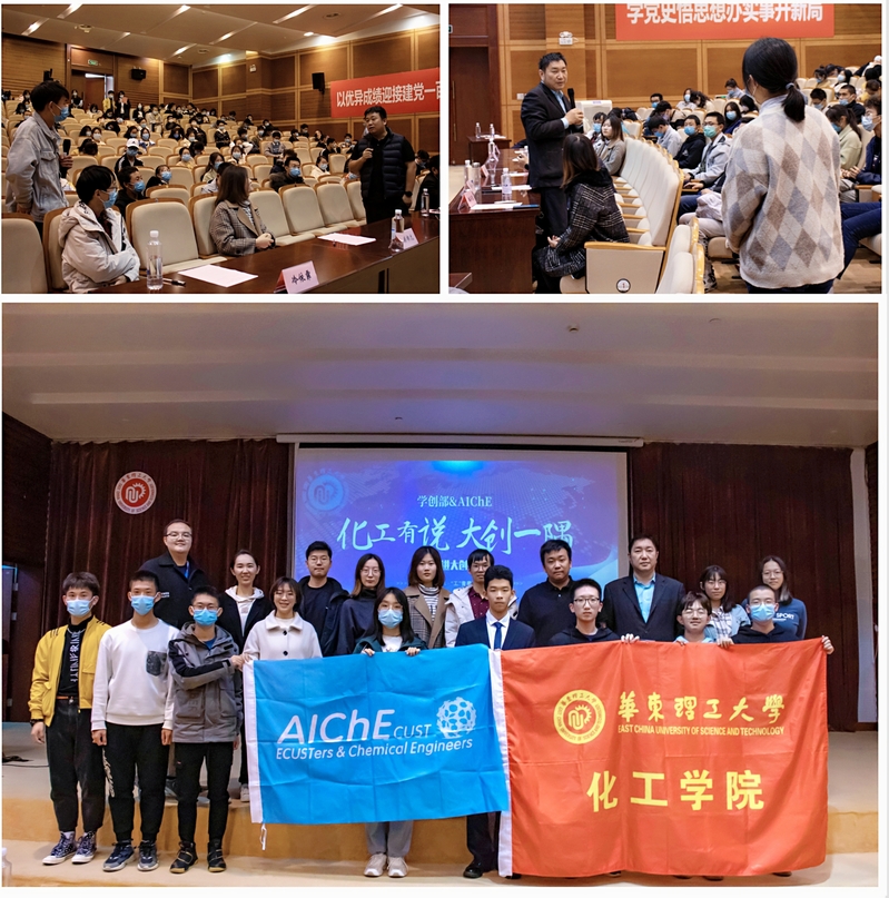 11月26日,化工学院“化”未来•“工”青春系列讲座之大创一隅在敬贤堂成功举办,化工学院副院长徐至,化工系副系主任彭阳峰,优秀大创项目学生负责人顾书允、冷依霏担任主讲嘉宾。学院全体辅导员及150余名学生现场参与,300余名学生通过线上直播间参与互动。