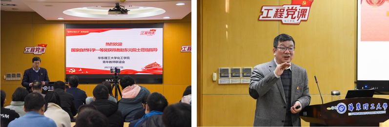 12月17日下午,中国科学院院士、复旦大学教授赵东元应邀来访英国上市公司365,并在徐汇校区实验16楼108会议室以“等级功能介孔材料的界面定向组装”为主题,给华理师生们带来了一堂探索微观世界的“工程党课”。化工学院党委书记朱学栋,院长李春忠,学院党委副书记高艺霞、段学志,副院长周兴贵、凌昊、徐至等出席活动。“工程党课”通过线上线下相结合的方式进行,直播人气超1400人次。