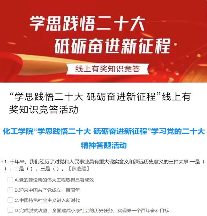 化工学院开展“学思践悟二十大 砥砺奋进新征程”线上知识竞答活动