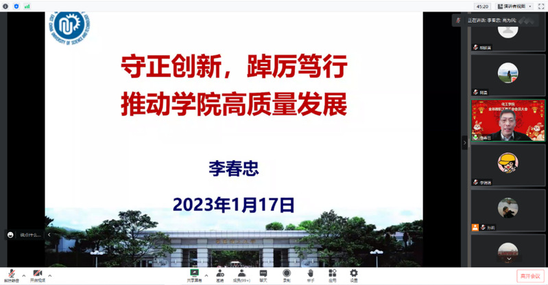 1月17日下午,化工学院采用线上会议的方式举行了2022年全体教职工暨工会会员大会。学院党政领导班子成员及全体教师出席会议。