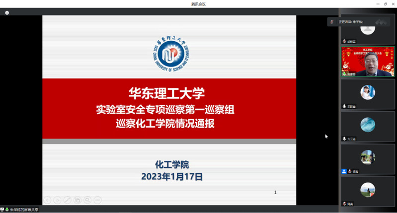 党委书记朱学栋对华东理工大学实验室安全专项巡察第一巡察组巡察化工学院的情况进行了通报,通报包括巡查过程、巡查情况报告、安全巡查整改任务清单及学院安全巡查整改方案四个方面。朱书记指出,学院将进一步做好实验室安全整改工作,努力促进化工学院发展,感谢所有教职工对学院实验室安全工作的支持。