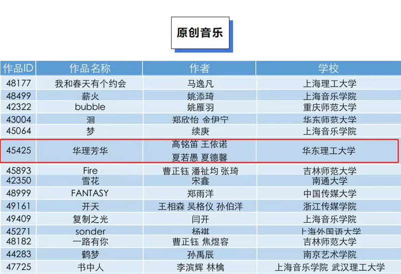 近日,由国家教育部体育卫生与艺术教育司指导、上海市教育委员会主办的第四届中国大学生创意节百强名单揭晓,我院师生原创戏歌作品《华理芳华》成功入选。