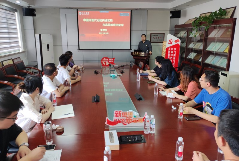 为深入学习贯彻党的二十大精神,扎实开展学习贯彻习近平新时代中国特色社会主义思想主题教育,5月12日下午,化工学院党委书记朱学栋以“中国式现代化的内涵实质与高等教育的使命”为题讲授专题党课,研究生工艺所第二党支部及其他支部部分党员参加了学习。