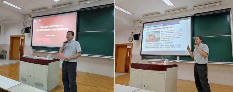 会上,朱学栋首先领学了习近平总书记在中共中央政治局第五次集体学习时的重要讲话精神,随后作了题为“以党的二十大精神引领新时代高校师德师风建设”的宣讲教育,详细阐述了党的二十大对加强师德师风建设作出的重要部署和习近平总书记关于教师队伍建设的重要指示批示精神,并着重讲解了《新时代高校教师职业行为十项准则》《华东理工大学教师师德失范处理办法》《华东理工大学教师思想政治和师德师风考核实施办法》等文件精神。他强调,广大教师要牢记人民教师身份,坚守为党育人、为国育才的初心使命,恪守师德师风第一标准,把师德师风各项要求内化于心、外化于行,做到以德立身、以德立学、以德施教、以德育德,努力成为新时代的“大先生