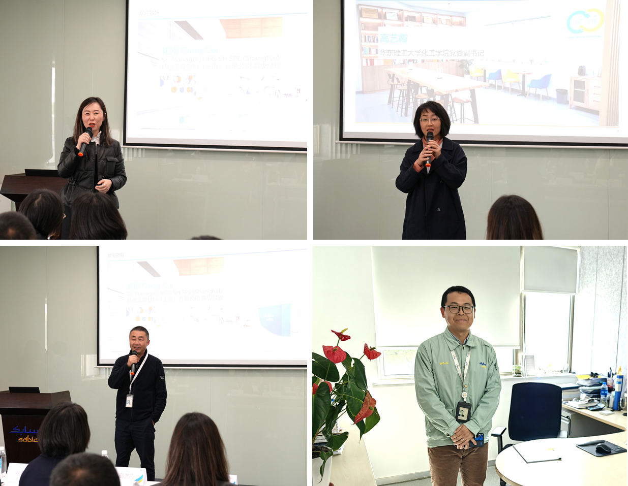 抵达公司后,企业相关部门的负责人首先为师生一行带来主题分享。金漪雯对化工学院师生一行的到来表示热烈欢迎,并对公司的发展历程、全球影响力、业务布局及主营业务等作了简要介绍。崔刚从工作服的故事展开,阐述了公司的文化和价值观。校友代表、特创工程塑料(上海)有限公司项目与工程经理张阔介绍了上海工厂的发展历程,并介绍了公司产品从研发到生产的绿色闭环产业链。高艺霞对SABIC的精心组织表示衷心感谢,并期待与公司开展更深层次的交流合作,共同探索知行合一的学生培养模式。