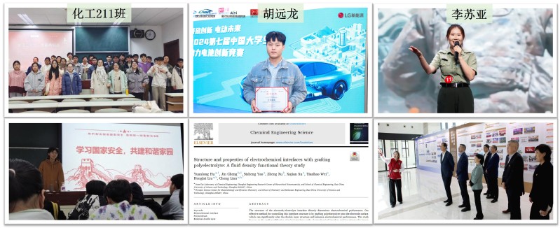 正是化工实验大赛的成长经历,让这三位同学坚定了在化工学科继续读研深造的决定,他们均以优异的成绩成功保研本校。同时,这份育人答卷也从“一枝独秀”走向“百花齐放”,优秀的本科生典型不断涌现。化工211班树立优良学风,追求全面发展,荣获校“十佳班集体”称号;胡远龙同学以第一作者身份在化工领域权威期刊Chemical Engineering Science发表学术论文,并获中国国际大学生创新大赛(2024)全国铜奖和第七届全国大学生动力电池创新竞赛全国银奖;李苏亚同学响应国家号召参军入伍,退伍后担任校史宣讲团成员,积极宣传校史文化,在思政微课上海市赛中荣获三等奖。