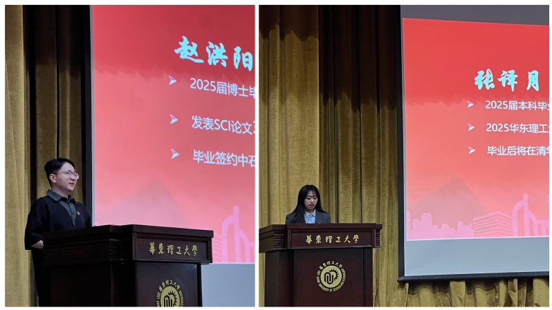 会上,机动学院党委书记白志山结合习近平总书记五四青年节给谢依特小学戍边支教西部计划志愿者服务队队员的回信精神,鼓励新时代毕业生党员要以习近平总书记五四回信精神为指引,主动将个人理想融入国家发展,以实干诠释青春誓言,让青春在火热实践中绽放。化工学院化学工程与技术专业博士生赵洪阳、机动学院智能制造工程专业本科生张译月作为毕业生党员代表发言。他们在校期间学业成绩优异,科研成果丰硕,多次参与国家级课题研究。同时,积极投身社会实践,组织公益活动,主动服务集体与社会,以全面的综合素质和强烈的社会责任感,展现了当代青年学子的使命与担当。